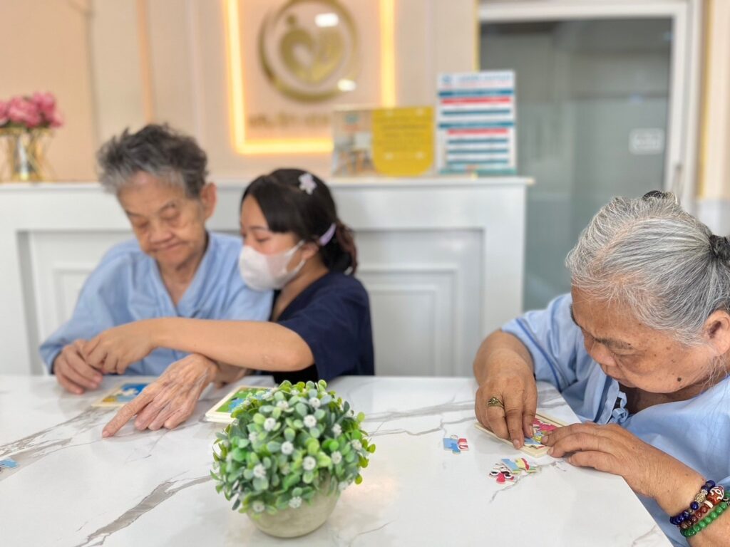 เรามีทีมพยาบาลวิชาชีพ ผู้ช่วยพยาบาล นักกายภาพบำบัด ที่จบหลักสูตรการดูแลผู้สูงอายุ มีการฝึกอบรมทีมงานให้มีความรู้ ความเข้าใจทักษะที่เหมาะสมในการดูแลผู้สูงอายุและผู้ป่วยแต่ละประเภทด้วยประสบการณ์และใจรักในการดูแลผู้สูงอายุ เราได้พัฒนาวิธีการและรวบรวมบุคลากรซึ่งให้การดูแลด้วยความรัก ความห่วงใย เปรียบประดุจคนในครอบครัว